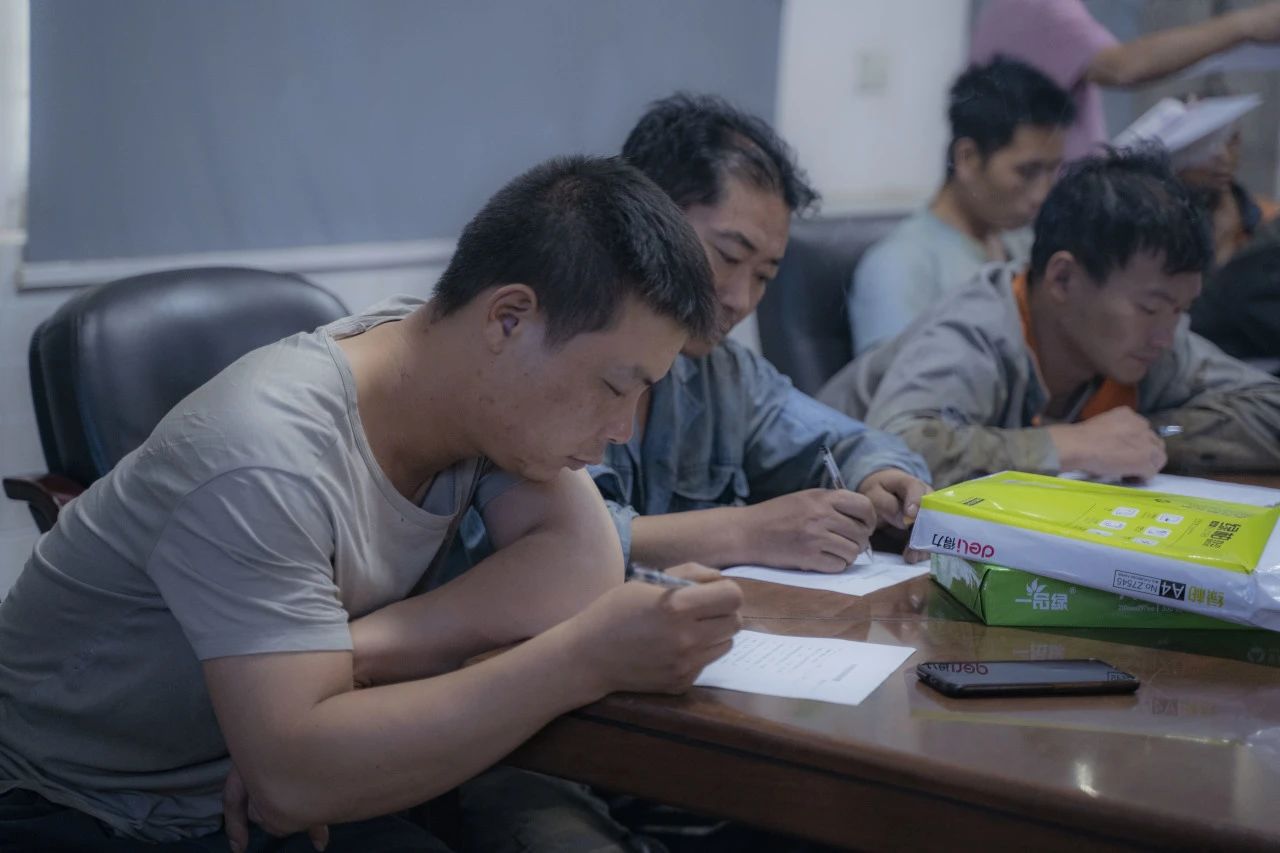 在對行車、有限作業(yè)空間安全操作標(biāo)準(zhǔn)進(jìn)行細(xì)致學(xué)習(xí)后,全體參會人員一同觀看安全教育視頻,了解車間作業(yè)中發(fā)生的真實(shí)事故,以及事故帶來的人員財產(chǎn)傷害。安全生產(chǎn)教育培訓(xùn)的環(huán)節(jié),車間工人進(jìn)行行車安全知識培訓(xùn)考試。安環(huán)委主任表示,他希望通過現(xiàn)場筆試這一方式,檢驗(yàn)大家此次培訓(xùn)掌握情況,同時進(jìn)一步加深鞏固安全知識。