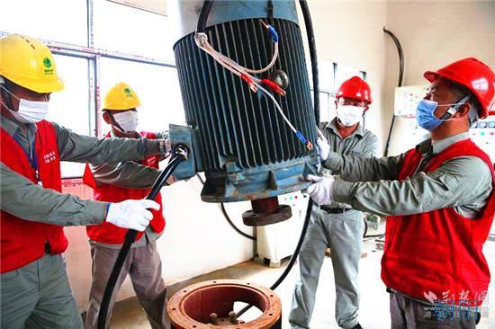原200千伏安的變壓器被吊下配變臺(tái)架,新調(diào)來(lái)的315千伏安的變壓器平穩(wěn)地落座在配變臺(tái)架上……通過(guò)近4個(gè)小時(shí)的安裝、調(diào)試,接通10千伏千畝湖支線(xiàn)等一系列的緊張作業(yè)。19時(shí)02分,2臺(tái)先期安裝好的55千瓦的水泵成功發(fā)起,兩股水流沖出千畝湖,流向遠(yuǎn)方。